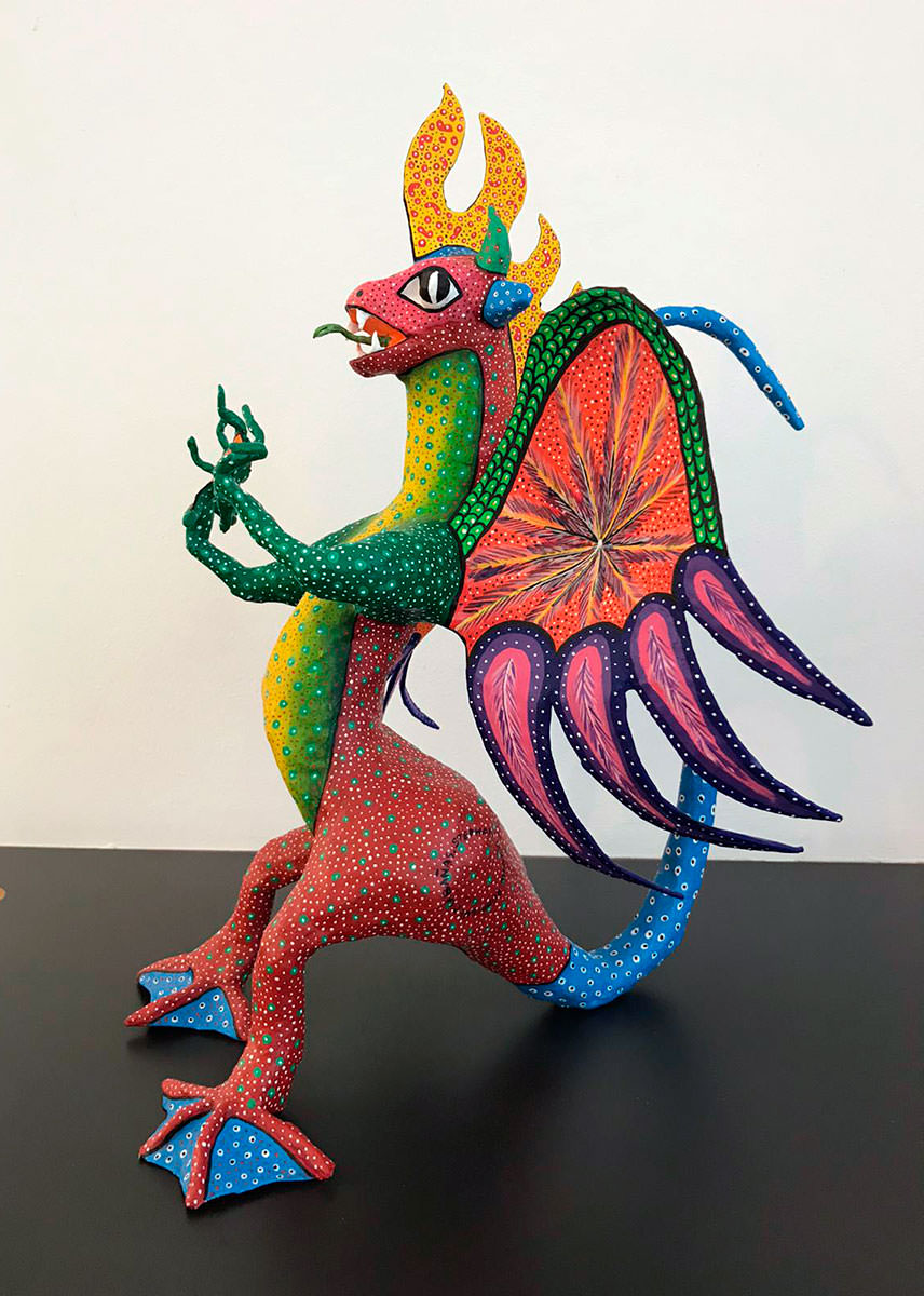 * Alebrijes sind leuchtend bunte mexikanische Skulpturen fantastischer Kreaturen, ursprünglich aus Pappmaché gefertigt, später auch aus Kopalholz geschnitzt und kunstvoll bemalt.